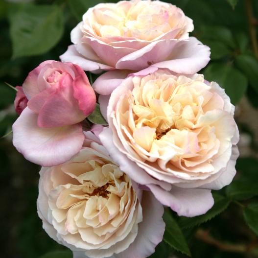 La floraison de ce rosier est très insolite et exceptionnelle, avec ses roses de grande taille très parfumées et dans des nuances de jaune pâle, de rose clair et de lavande. Les branches arquées ploient sous le poids des fleurs. Très résistant au froid, il n'est pratiquement pas sujet aux maladies.