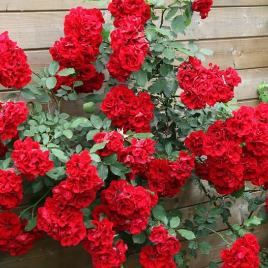 Des fleurs rouge lumineux qui restent longtemps sur les branches. Un feuillage aux jeunes pousses pourpres et une forte végétation font de ce rosier un excellent arbuste pour toutes les utilisations en massifs ou en haies.