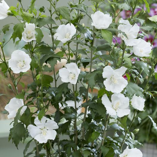 Laissez-vous éclairer par cet althéa aux fleurs blanches pendant tout l'été. Il illuminera vos haies et vos jardins grâce à son port étroit. Favorisez-lui un emplacement à l'abri du vent l'hiver.