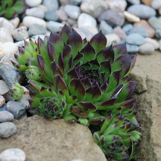 Cette variété élégante se pare de pointes noires soulignant ses courbes géométriques. Une belle variété à associer aux autres joubarbes de la série CHICK CHARMS®.