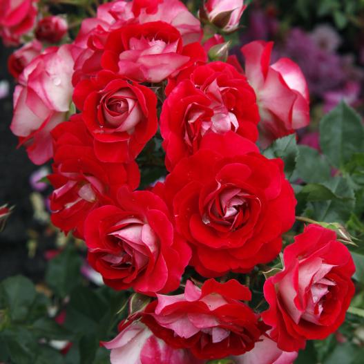 Ce rosier de petite taille possède des fleurs doubles rouge au revers rose. Son port compact en fait un rosier qui se comporte bien en pot sur un balcon ou une terrasse.