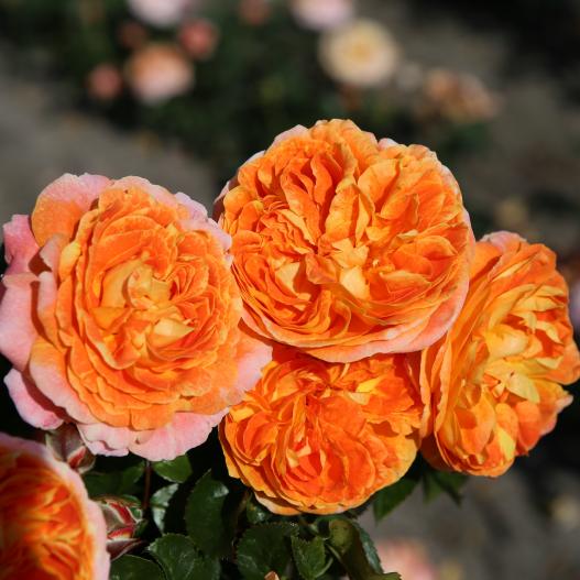 Évoquant les fleurs anciennes, Samba nous offre sur un port compact de grosses fleurs orange saumoné avec le dessous des pétales jaune. Son feuillage est sain, résistant à l'oïdium et à la tache noire.