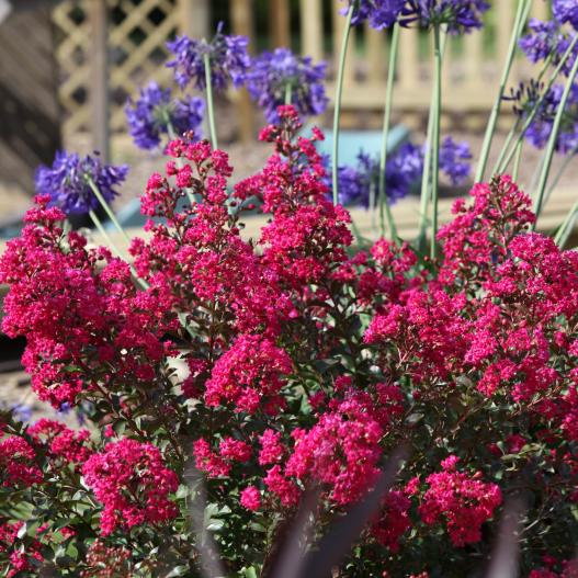 Le Lagerstroemia BOUQUET Cherry est une variété précoce aux fleurs fuchsia et à l'écorce décorative.