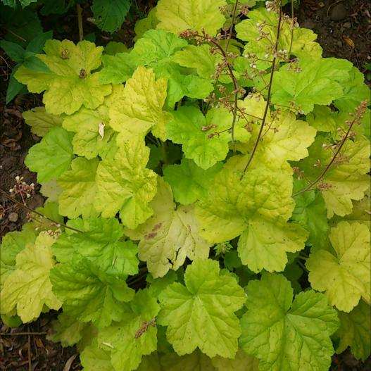 Variété au feuillage lumineux, l'Heuchera WORLD CAFFÉ Romano se nuance en différentes teintes de jaune et de vert, égayant les zones sombres du jardin.