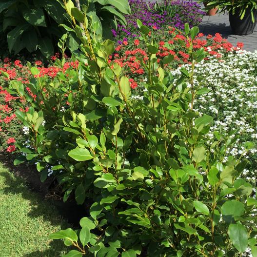 Cette variété se distingue par sa végétation moyenne (30 cm/an), ses nombreuses ramifications et son feuillage brillant contratant avec les branches très noires. Son utilisation principale en le bord de mer car elle résiste bien aux embruns, mais pas aux grands froids. Elle se plaît également en pot.