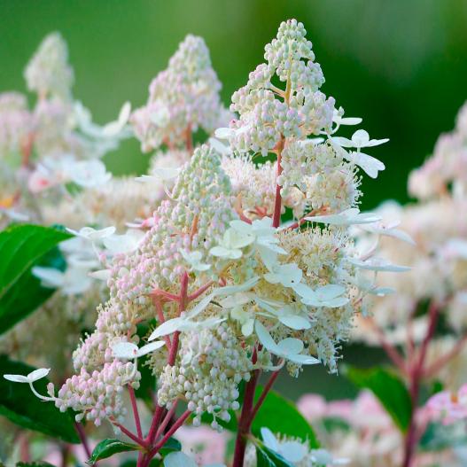 Early Harry est le plus précoce des hortensias paniculés qui normalement fleurissent en été. Il peut porter ses boutons en mai et fleurir à la suite en blanc puis en rose sur la fin de floraison. Il supporte tous les sols et préfère le soleil pour bien fleurir, en pot comme au jardin.