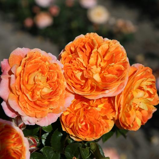 Évoquant les fleurs anciennes, Samba nous offre sur un port compact de grosses fleurs orange saumoné avec le dessous des pétales jaune. Son feuillage est sain, résistant à l'oïdium et à la tache noire.