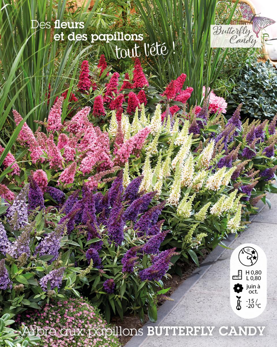 Compact (moins d’un mètre) et incroyablement florifère, cet arbuste attire papillons et butineurs tout l’été. Ses fleurs colorées se renouvellent sans cesse, offrant un décor généreux du jardin au balcon. Résistant et peu exigeant, il est parfait pour les haies basses, les bordures, les pots ou les massifs de premier plan. Un concentré de vitalité et de couleurs.