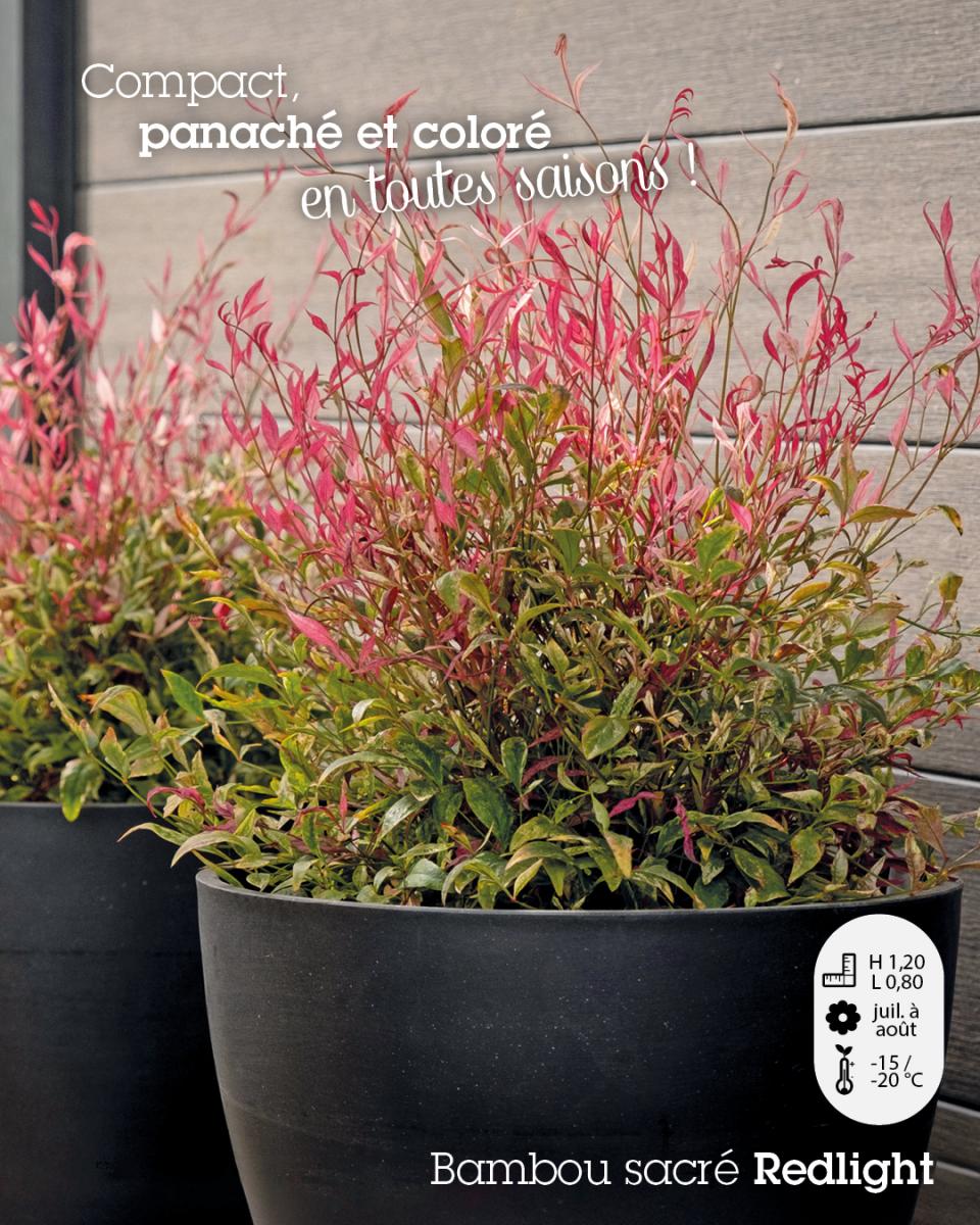Feuillage panaché vert et blanc, jeunes pousses rosées, port compact et buissonnant… Redlight est un arbuste décoratif en toutes saisons. Résistant au froid, facile à vivre, il se prête aussi bien aux massifs qu’aux haies basses ou aux compositions en pot. Sa touche lumineuse en fait un allié des scènes modernes et graphiques.