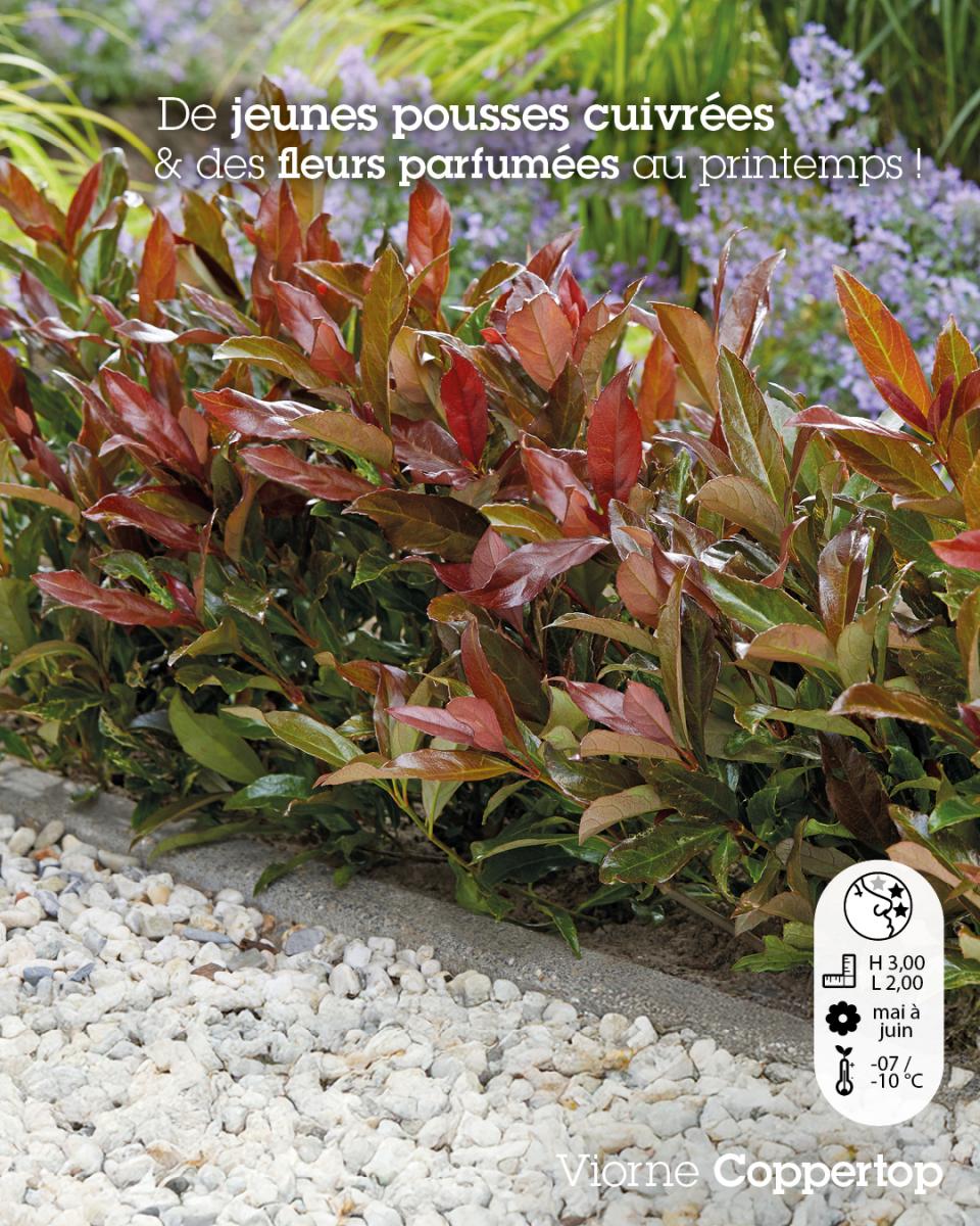 Cette viorne séduit par ses jeunes pousses cuivrées, contrastant avec son feuillage vert profond. Au printemps, ses fleurs blanches parfumées apportent fraîcheur et élégance. Rustique et vigoureuse, elle se plante aussi bien en haie qu’en massif ou en bac. Un arbuste robuste et raffiné, pour un jardin qui change de visage au fil des saisons.