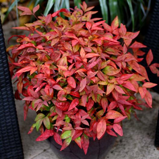 Ce bambou sacré arbore un feuillage persistant aux couleurs étonnantes. D'abord roses, les feuilles deviennent vertes à maturité puis se teintent de pourpre à l'automne. Il ne nécessite que très peu d'entretien.
