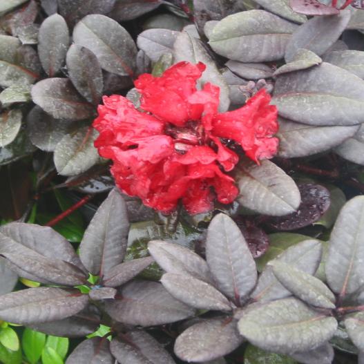 Avec un feuillage pourpre similaire aux cotinus (arbre à perruque), Everred apporte aux massifs de terre de bruyère la couleur qui manquait. Son feuillage persistant reste bien coloré toute l'année. En Avril-Mai, les grandes fleurs rouges apparaissent et illuminent le coussin pourpre. La végétation est compacte, elle forme un petit coussin qui prend place au premier plan des massifs. Il peut également être placé en pot ou en bac car sa petite taille convient bien pour cette utilisation.