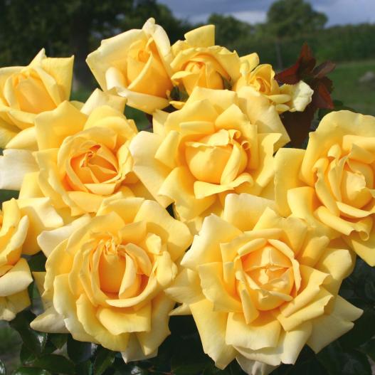 Ce rosier à l'allure solide présente des fleurs en nombre, au coloris jaune vif au centre et plus tendre au pourtour. Le feuillage naturellement sain résiste bien aux maladies.
