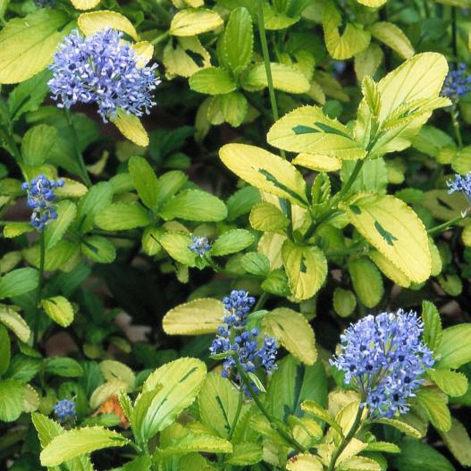 Couleur feuillage : jaune/vert Couleur de Fleur : bleu Période de floraison : mai à juin & septembre à octobre Exposition : soleil mi-ombre Hauteur/Largeur : 2,50 / : 1,50 Rusticité : -07 / -10°C Sol : s'adapte à tous terrains Parfum : légèrement parfumée (*/***)