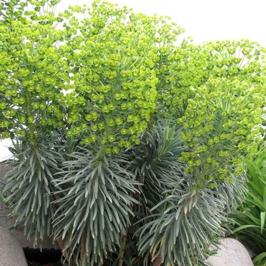 Cette euphorbe se caractérise par une végétation très courte et un feuillage bleuté. Comme beaucoup d'euphorbes, elle préfère les sols drainants à secs. Elle offre davantage de pigments bleutés lorqu'elle est en situation sèche. Sa floraison jaune lumineux réhausse son effet en deuxième partie de printemps. Il est recommandé de couper les fleurs fanées à la base de la plante pour laisser la place aux nombreuses petites pousses qui proviennent du cœur de la plante.