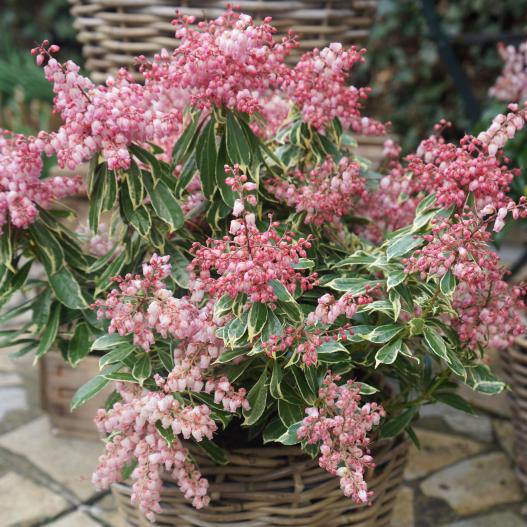 Un joli feuillage panaché doré surmonté d'une floraison intense rose tendre caractérise ce bel arbuste qui préfère les sols acides et frais. Qu'il soit en pot ou en massif, il préfère l'exposition à mi-ombre.