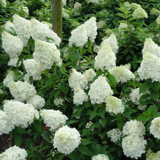 Polar Bear se caractérise par sa compacité de forme, ses nombreuses tiges solides supportant des panicules blanc crème aux nombreux fleurons. Les panicules sont pointus et très denses. De part sa petite taille, la plante se positionne partout, au jardin en massif comme en pot ou en bac.