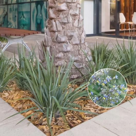 Dianella coolvista possède un feuillage bleu-gris très tendance et un port dressé, ramifiant facilement. Sa floraison très délicate se compose de petites fleurs bleues au coeur jaune, et a lieu à la fin du printemps. Cette variété originaire d'Australie est particulièrement résistante à la sécheresse. Peu rustique, elle nécessite une protection en hiver. Elle ne demande que peu d'entretien. De nouvelles pousses émergent à la base de la plante par autobouturage.