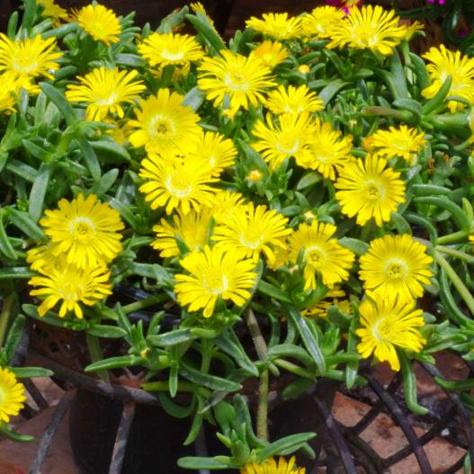 Le Delosperma WoW Golden est une nouvelle variété très florifère d'un jaune lumineux. Comme tous les Delosperma WHEELS OF WONDER, la variété WoW Golden résiste à la sécheresse et au gel. Elle se plaira en pot aussi bien qu'en massif.