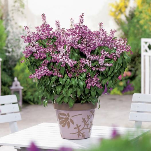 La floraison en grappes roses tendre est exceptionnelle par le nombre de ses fleurs et par la tenue aux intempéries. Pink Passion préfère les sols acides et frais pour une exposition à mi-ombre en bac ou en massif.