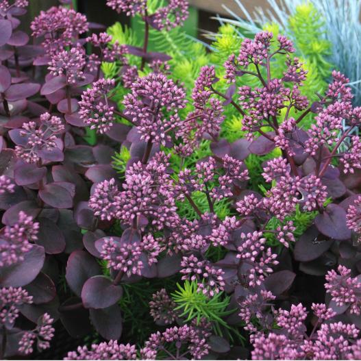 Cherry tart est unique par son feuillage rouge pourpre et son port rampant. Il ne se désunit pas, mais reste toujours avec un centre de plante bien garni. Sa floraison rose intervient en fin d'été et se prolonge jusqu'à l'automne.