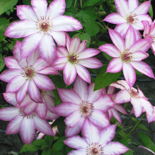 Clématites Collection® "Généreuses et faciles" : Une sélection de Clématites qui peuvent se faufiler partout : dans vos arbustes, dans vos plantes grimpantes établies ou bien seules sur un support. Pas d'entretien particulier, juste une taille de nettoyage au printemps et ensuite, des fleurs à profusion.