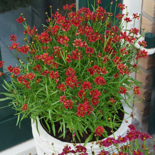 Cette série de coreopsis aux fleurs miniatures fleurie de mai à novembre sans interruption. Les fleurs fanées ne se voient pas parmis l'abondance de la floraison continue. Trois couleurs composent cette série, rose, pourpre et rouge. Les plantes sont compactes et se plaisent dans les massifs en premier plan ou en pot seules ou en mélange.