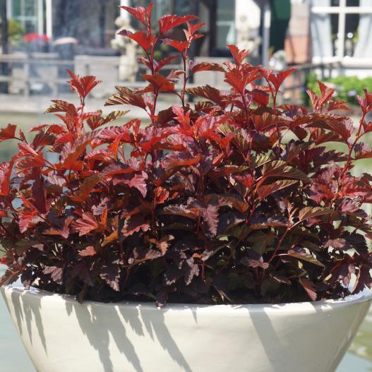 Le physocarpus Little Angel possède un feuillage rouge compact des plus remarquables. La plante, très ramifiée, est résistante aux maladies et ne demande que peu d'entretien. Ses jeunes feuilles rouges bordées de jaune attirent le regard durant le printemps, suivies des grappes de fleurs blanches en été. Little Angel est très décoratif dans une composition ou planté seul en pot sur une terrasse ou un balcon. Il se plaira également au sein d'un massif où son feuillage apportera du contraste.