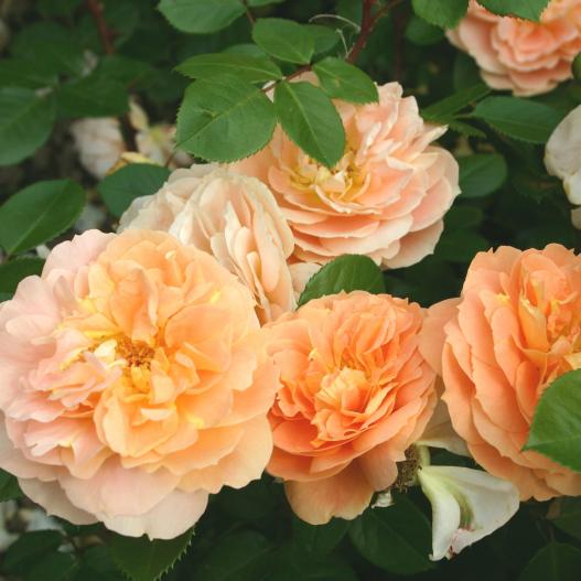Sa forme généreuse mais néanmoins contenue supporte la foison de fleurs doubles. Sa floraison est abondante et incessante jusqu'aux gelées. Elle est composée de bouquets de grosses fleurs doubles au coloris abricot lumineux. Sa haute résistance aux maladies vous permet de composer des massifs aux tons chauds sans soucis. Il compose le décor seul mais s'accompagne bien de plantes vivaces ou d'arbustes.