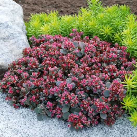 Cet hybride entre un Sedum et un Orostachys reprend les caractéristiques des deux genres. Les feuilles en rosettes bleutées proviennent de l'Orostachys et les fleurs qui recouvrent la plante en fin d'été proviennent du Sedum. Cette plante est très résistante à la sécheresse mais également au froid. Elle demande un sol bien drainé pour prospérer. Elle trouvera forcément une place dans tous les jardins ou sur toutes les terrasses.
