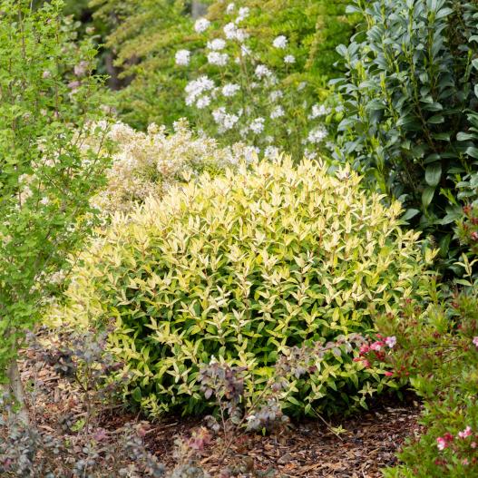 Radiance porte bien son nom : ses jeunes pousses crème avec des nuances de rose saumoné et son feuillage vert bordé de blanc diffusent un halo lumineux au jardin et ses fleurs jaune d’or rayonnent durant l’été. Ce millepertuis compact, sans souci d'entretien, illumine massifs, talus et potées. Installez-le au soleil ou à mi-ombre, en sol drainé. Il résiste au froid, aux maladies, et attire les insectes pollinisateurs. Même hors floraison, son feuillage tricolore reste spectaculaire.