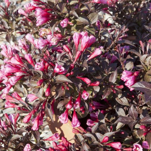 C'est le seul weigélia pourpre érigé. Il présente un feuillage foncé brillant presque noir en plein soleil. Les fleurs rose-pourpre viennent illuminer ce beau feuillage en mai et en septembre.