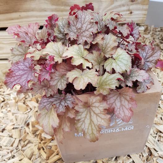 L'Heuchera WORLD CAFFÉ Amaretto arbore un feuillage fortement nervuré aux nombreuses couleurs, changeant au fil des saisons.