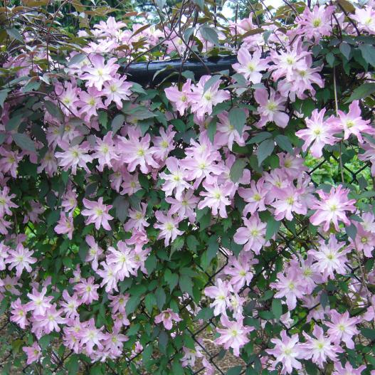 Son feuillage pourpre met en valeur ses grandes fleurs roses au centre blanc ponctuées d'étamines jaunes. Un joli mariage vigoureux.