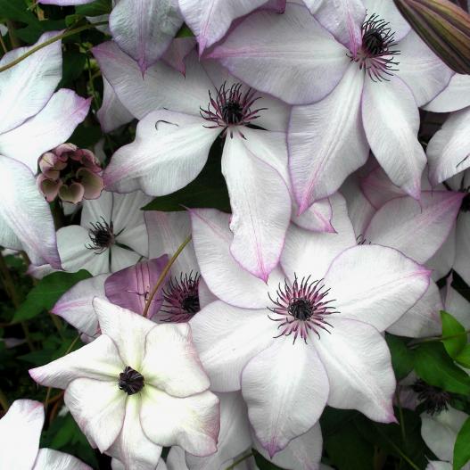 Cette très belle clématite offre des grandes fleurs aux reflets satinés de rose avec un cœur violet. Cette élégante combinaison offre une décoration superbe de juin à octobre. Elle peut se faufiler partout : dans vos arbustes, dans vos plantes grimpantes établies ou bien seules sur un support. Pas d'entretien particulier, juste une taille de nettoyage au printemps et ensuite, des fleurs à profusion.