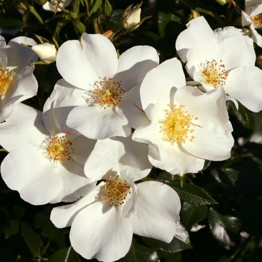 Ce petit buisson très sain au port harmonieux produit de grandes fleurs simples blanches. Les pétales tombent sans faner, ce qui lui donne un aspect toujours propre. Il possède un feuillage vert franc brillant pour souligner les belles fleurs blanches. Comme tous les Sans Contraintes® il est facile à tailler, comme un simple arbuste et non comme un rosier. Cette forme particulière permet de constituer des petites haies d'environ 1 mètre.