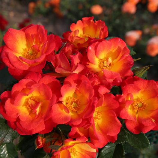 Le cœur jaune souligné par les étamines attire les abeilles, et le pourtour des fleurs vermillon attire les regards. Ce solide rosier très résistant aux maladies est parfait en utilisation en massifs seul ou en mélange avec des plantes vivaces et des arbustes. Dans un grand pot sur la terrasse, il peut également illuminer son environnement.