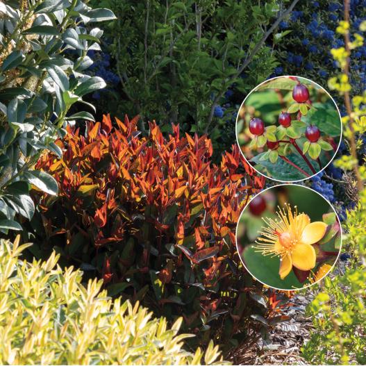 Le millepertuis MIRACLE® Night porte après sa floraison jaune d'inombrables petites boules pourpre, donnant à l'arbuste un aspect très décoratif même après la floraison. Tailler à 10 cm en mars pour obtenir de gros fruits.