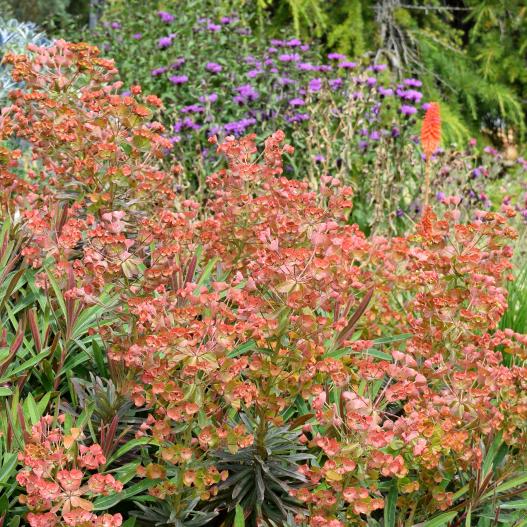 Cette euphorbe présente une floraison qui démarre verte et qui tourne rapidement au rose intense. La floraison débute au printemps et se termine en été, ce qui est unique. La plante veillit très bien à condition d'être dans un sol drainant. Les abeilles l'adorent. Elle peut composer des bordures au jardin ou se faufiller dans les potées.