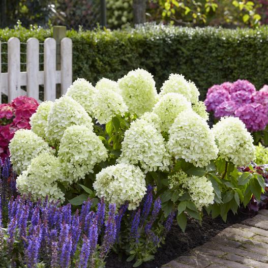 Rare, un hortensia paniculé nain ! Et c'est Little Spooky. Les fleurs sont pleines et coniques, bien dressées sur des tiges solides. Elles sont blanches durant toute la floraison. Bien qu'il puisse être planté en pleine terre, il sera à l'aise en balcon ou sur la terrasse en pot ou en bac.