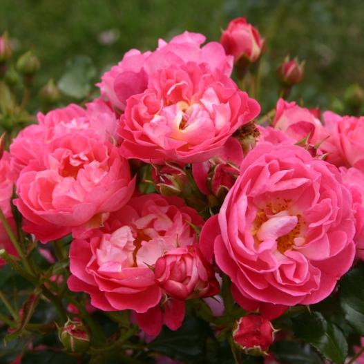 Rosier miniature généreux et sain (ADR) qui multiplie les floraisons tout au long de la saison. Les fleurs rose pur au centre jaune blanc et au revers crème sont de petite taille mais semi-doubles et très abondantes. Elles sont groupées, ce qui donne un effet de masse important. On y trouve également un léger parfum. La taille printanière à 15 cm permet une belle floraison toute l'année.
