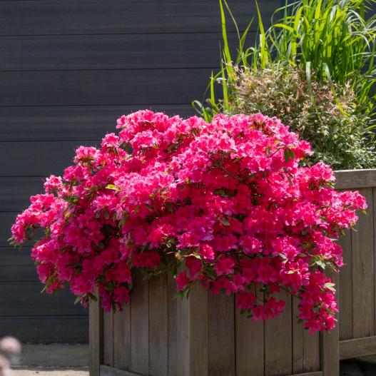 Avec deux floraisons par an, au printemps et à l'automne, cette azalée prolonge l'éphémère des variétés classiques en arborant des fleurs rose bonbon.
