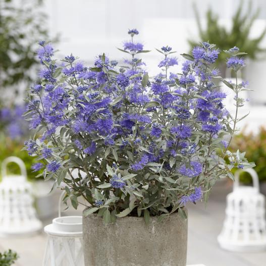 Sterling Silver possède un feuillage gris lumineux qui épaule sa floraison bleu intense. Il convient parfaitement pour créer des ambiances urbaines basées sur le gris et le blanc. Il se plante en bac, pot ou massif à condition que le sol soit drainant.