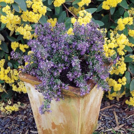 Un tapis échevelé qui se couvre d'une profusion de fleurs bleues. Son parfum rappelant le Midi enchantera vos terrasses et balcons autant que vos massifs.