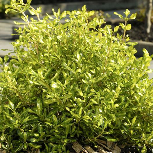 Couleur feuillage : vert/jaune Couleur de Fleur : insignifiante Période de floraison : insignifiante Exposition : soleil mi-ombre Hauteur/Largeur : 1,20 / : 1,20 Rusticité : -03 / -07°C Sol : drainant