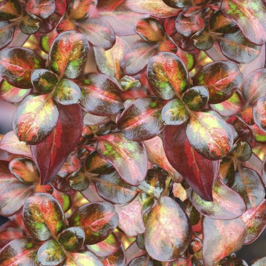 After the Rainbow est un Coprosma aux couleurs du feu issues du jaune, orange, rouge et marron. Le feuilage brillant illumine les compositions d'automne et de début de printemps.