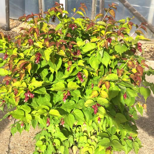 L’arbre aux faisans Little Lanterns est un luminaire végétal ! Ses jeunes pousses cuivrées attirent le regard au printemps, puis son feuillage vert-jaune éclaire massifs et bacs, tandis que ses fleurs blanches abondantes, recouvertes par de grandes bractées roses, telles de petites lanternes, s’épanouissent tout l’été jusqu’aux gelées. Les baies noires au goût unique de caramel brûlé ajoutent une touche gourmande en cuisine ou nourrissent faune sauvage et volailles domestiques. Vous pouvez manger quelques baies crues, mais le mieux est encore de les utiliser dans des recettes pour remplacer le caramel ! Plantez-le en sol drainé, au soleil ou à mi-ombre, pour profiter d’un arbuste décoratif et utile, facile à cultiver.