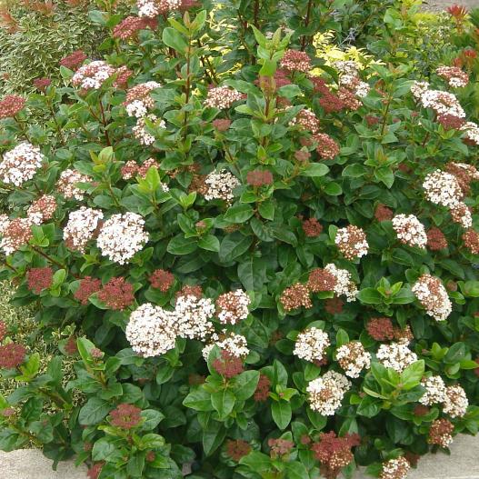 Cette variété de laurier-tin se distingue par ses boutons floraux rose vif apparaissant dès la fin de l'été et par ses fleurs roses claires regroupées en ombelles, qui apportent un peu de couleur au jardin durant l'hiver. Le feuillage persistant est d'un beau vert lustré. Les jeunes pousses pourpres au printemps sont du plus bel effet dans une haie mixte. Les fruits sont d'un beau bleu satiné.