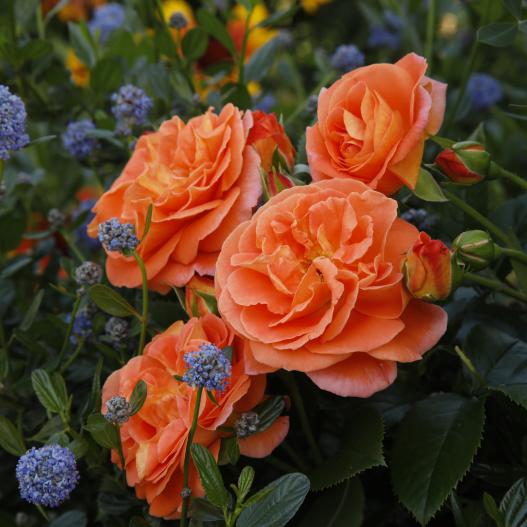 Ce petit rosier qui convient bien à la culture en pot est doté de nombreuses fleurs doubles orangées qui illuminent les potées sur la terrasse. De culture facile et avec une bonne résistance aux maladies, ce rosier se marie bien avec les graminées persistantes et les arbustes de petites dimensions.