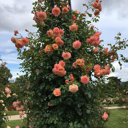 Couleur feuillage : vert Couleur de Fleur : abricot / saumon Période de floraison : mai à octobre Exposition : soleil mi-ombre Hauteur/Largeur : 2,00 / : 0,80 Rusticité : -15 / -20°C Sol : s'adapte à tous terrains Résistance au mildiou : Insensible (***/***) Résistance à la tache noir : Insensible (***/***) Parfum : parfumée (**/***) 2018